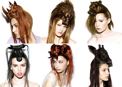 Esses penteados talvez ficassem interessantes como uma fantasia de carnaval. Mas duvido muito que alguem saia por aí com uma zebra na cabeça...